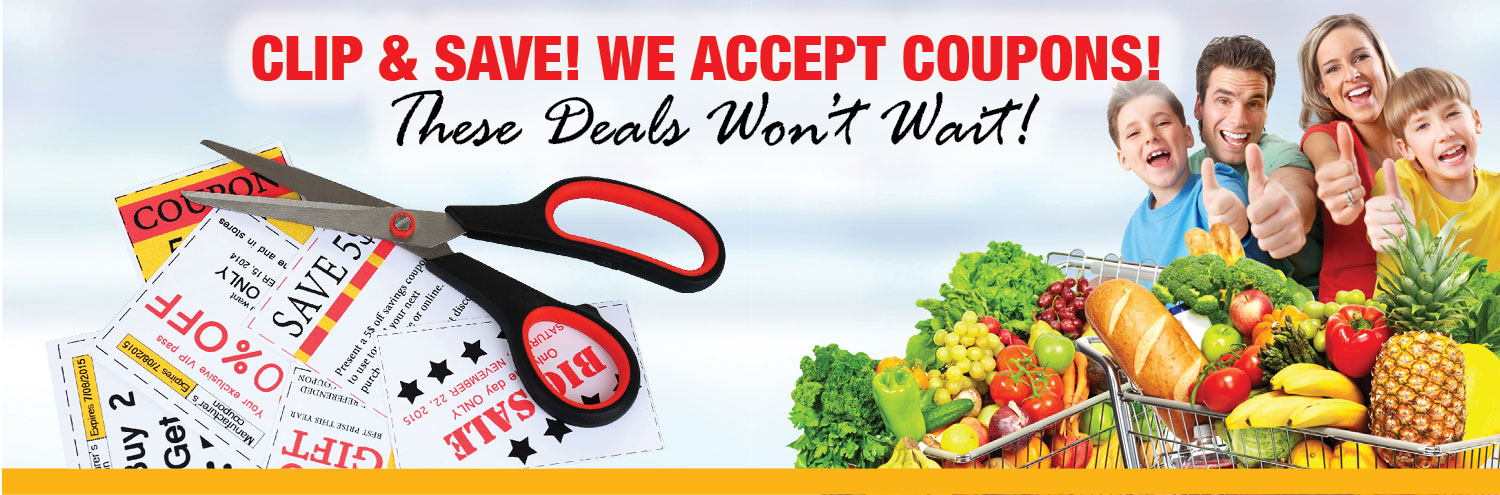 1. All valid coupons should be presented to the cashier at the time of checkout.
